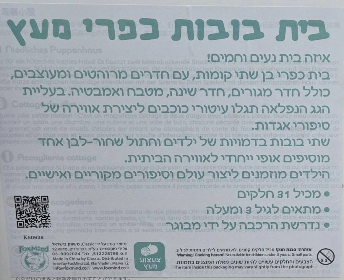 - 31 חלקים צבעוניים ואיכותיים – כולל רהיטים מלאים, שתי בובות קטנות וחתול שחור-לבן.